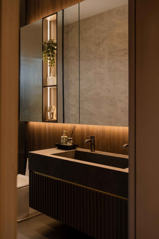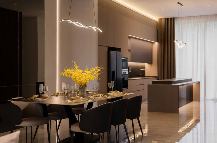 At Jalan Menarong, we designed a modern-luxury interior tailored for a family of four, blending elegance with personalized functionality. The living room features an 80-inch TV and a bespoke display area for the family’s prized toy collection, creating a space that is both stylish and personal.