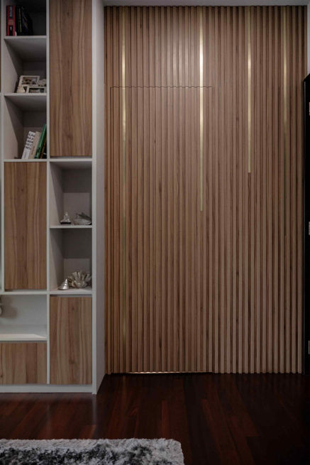Throughout the condo, bold design choices bring sophistication—like the book-matched marble TV wall and a marble-clad piano nook that exude elegance. French beading on the walls adds timeless detail, while edge glass touches on the sliding kitchen door and pantry cabinet enhance the refined aesthetic. This home blends grandeur with playfulness, making it both sophisticated and family-friendly.