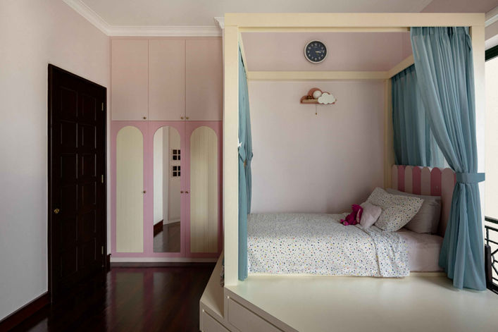 In this Pebblebay Condo, each space has been thoughtfully crafted to balance luxury and charm. The kids' room transforms into a whimsical princess house, where dreams come to life within a delightful mini-home structure. Soft pastel tones, fairy lights, and cozy nooks create a magical sanctuary for play, rest, and imagination.