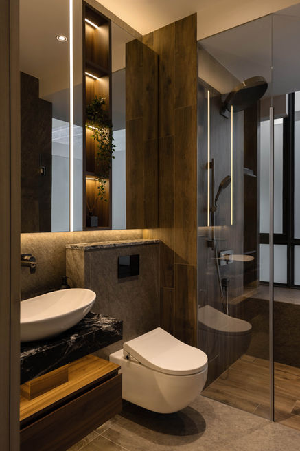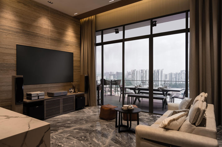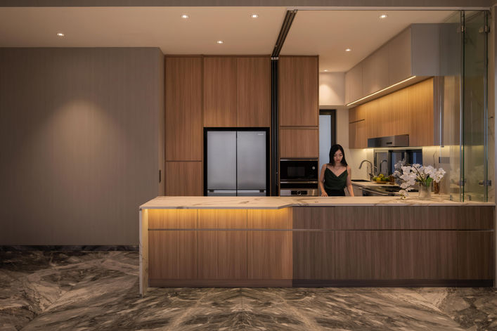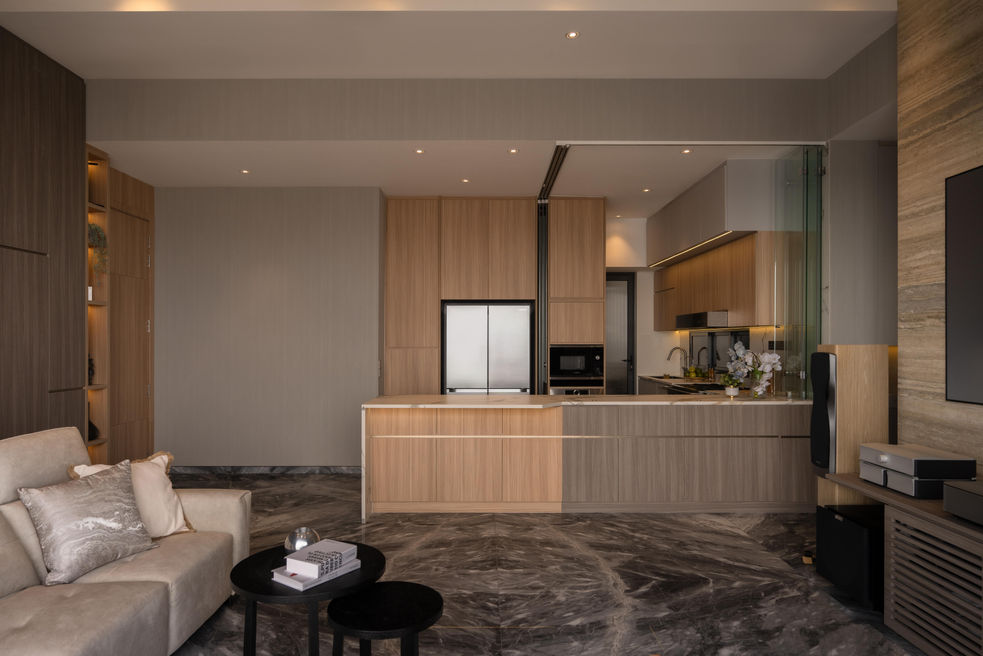 Every corner of this Trizon condo has been carefully curated to reflect a balance of elegance and practicality, offering a space that feels both luxurious and livable. The thoughtful integration of wood and stone finishes, combined with the soft, rich textures of linen and leather, creates a serene, sophisticated atmosphere perfect for modern urban living.